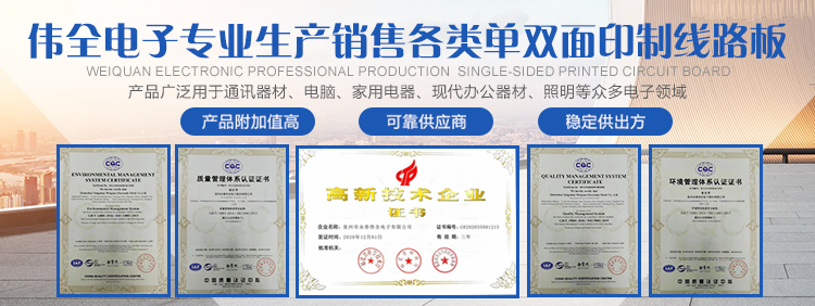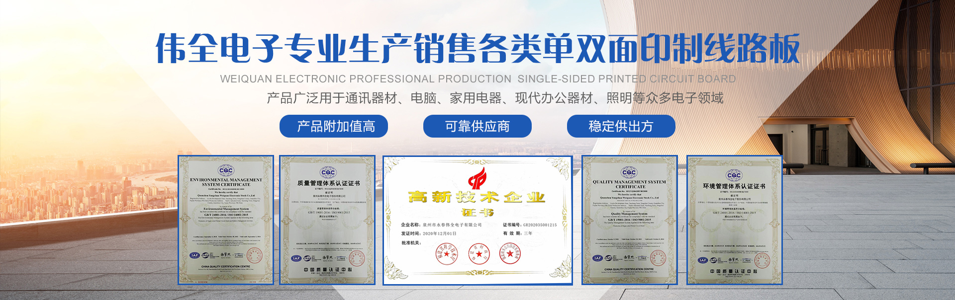 泉州永春偉全電子股份有限公司是一家合資企業(yè)。創(chuàng)辦于2011年,專業(yè)生產(chǎn)各類單面印制線路板,是福建省專業(yè)生產(chǎn)印制線路板的主要廠家,公司坐落在泉州市永春縣桃城鎮(zhèn)留安開(kāi)發(fā)區(qū)添福工業(yè)園,占地面積達(dá)10多畝,交通方便。公司現(xiàn)有員工80多人,總投資3000多萬(wàn)元人民幣,年生產(chǎn)能力逾20萬(wàn)平方米。